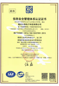 信息安全管理體系認證證書