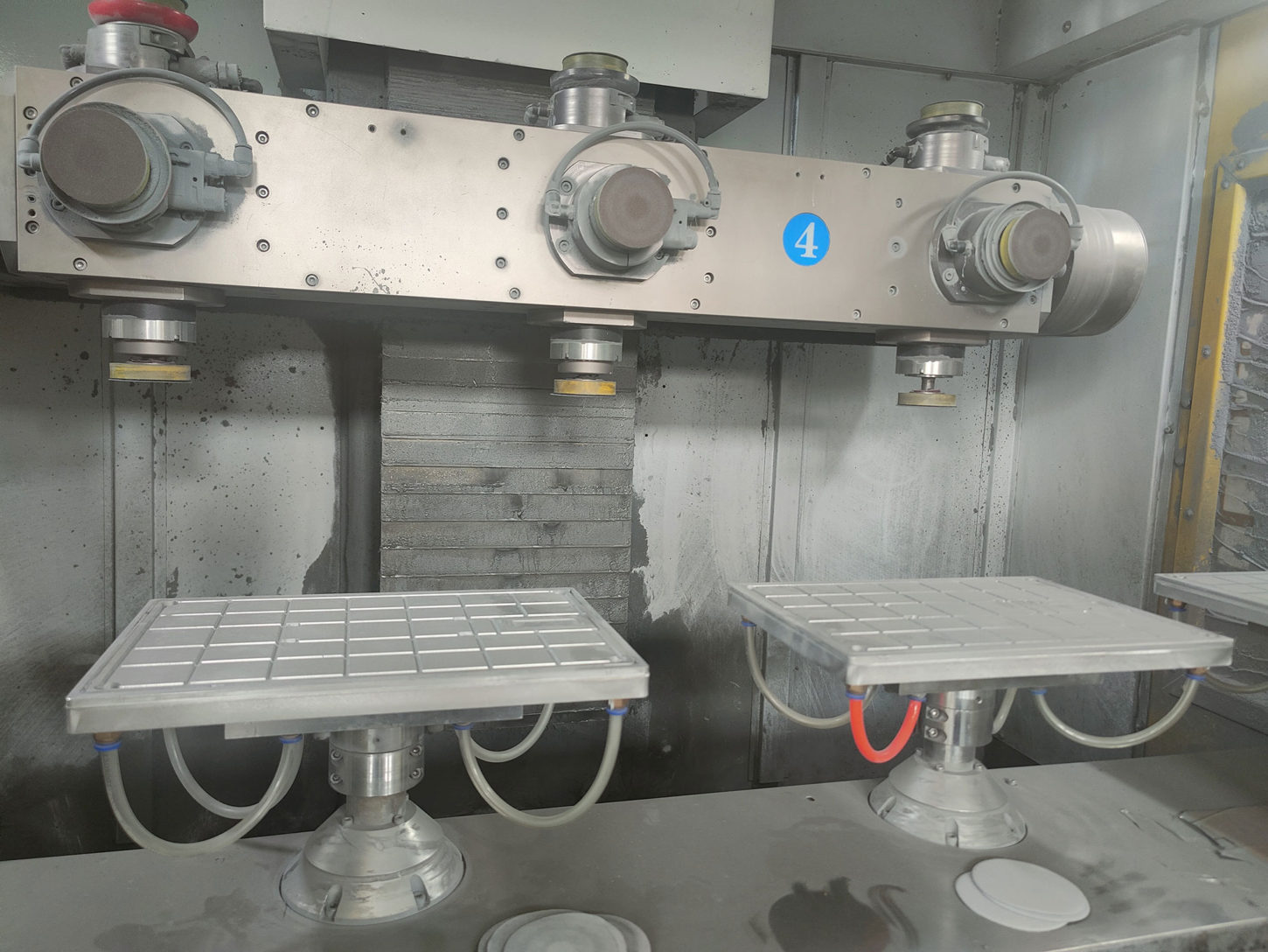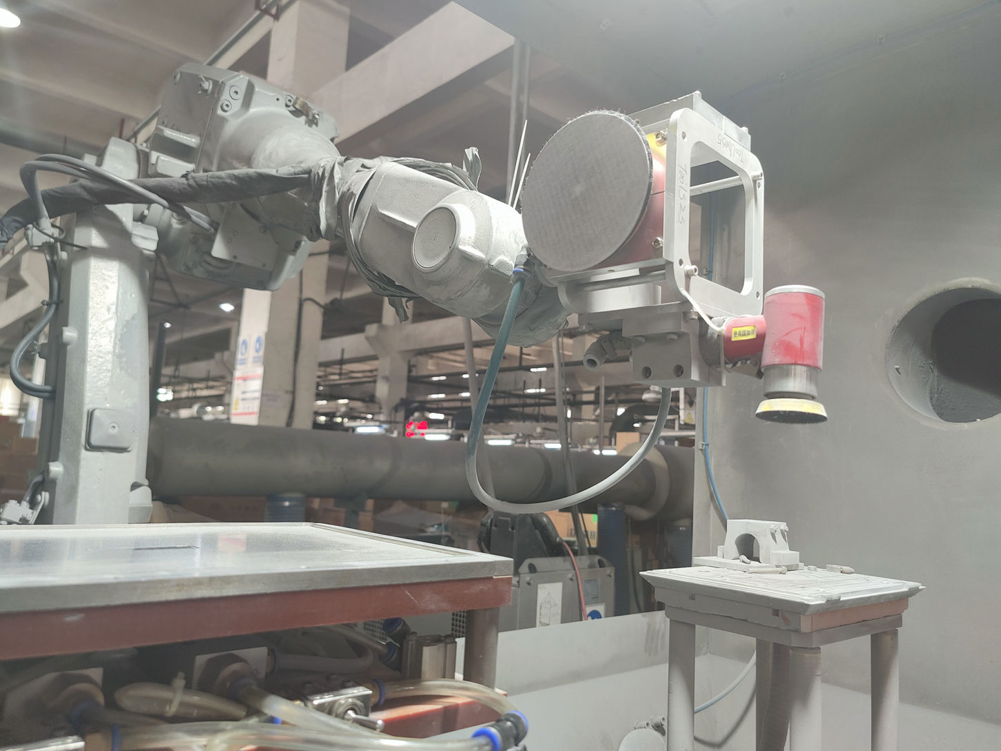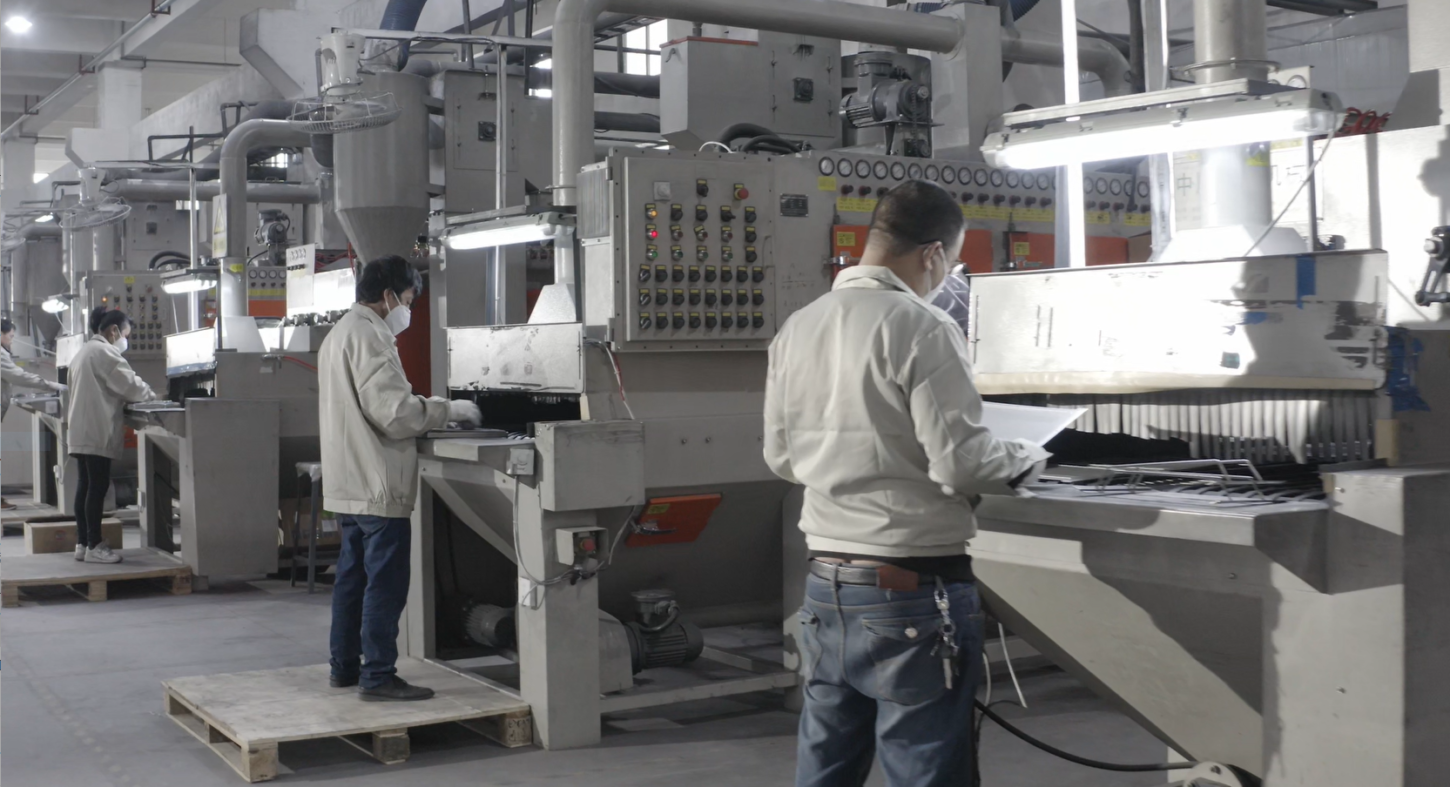 打磨工藝是通過手工或是機械打磨等工具去除金屬工件表面粗糙、凹坑及表面缺陷。噴砂的製程主要是對金屬沖壓工件表面做切削作用,使工件表面獲得一定的處理並得到清潔。使用不同係數的噴砂可讓金屬表面擁有不同程度的粗糙度和優質的觸摸手感,此工藝也提高金屬工件的抗疲勞性也增加了工件表面陽極或是塗層之間的附著力。大泰打磨噴砂廠區占地面積6300平方米,擁有專業打磨技術團隊、多元設備與先進的多軸全自動ABB自動打磨機來全方位的服務客戶需求。