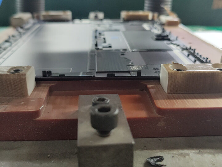 模治具部門主要開發筆記型電腦A/C/D三大件的模治具, 鋁鎂熱沖壓模具與墩厚模具。 模具年生產能力110套以上,占比廠內開發50%。治具年產能400套,占比廠內開發70%。公司採用軟體部份是CAD、UG製圖設計軟體,並有成套模具的設計和加工能力,並擁有經驗豐富的模具設計師和模具鉗工師傅、線割加工師傅及CNC加工專業的技術人員。